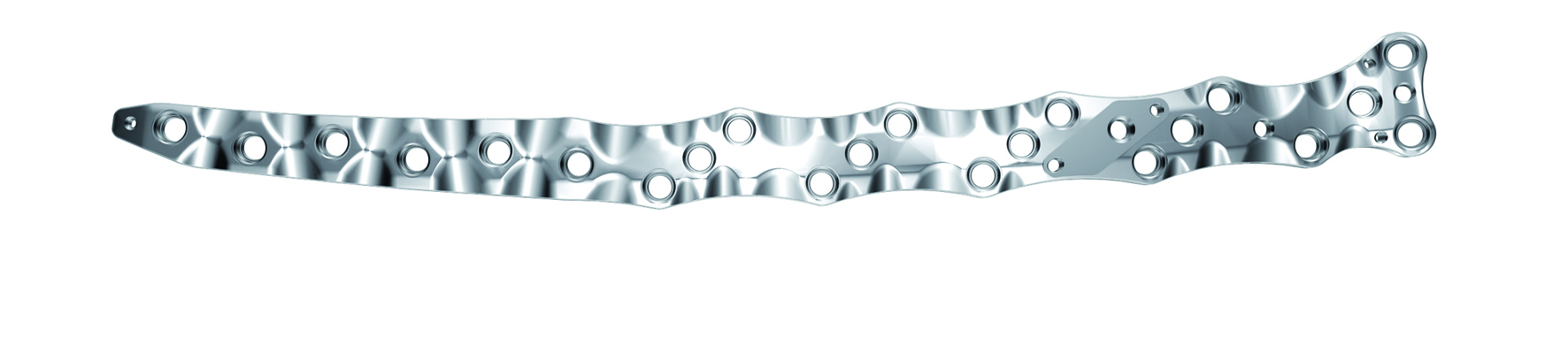 The NCB Periprosthetic Proximal Femur Plate is a polyaxial locking plate for the treatment of femur fractures, including periprosthetic femur fractures. Innovative plate design combined with the polyaxial NCB Locking Plate Technology offers solutions for fixation of particularly complex periprosthetic fractures.